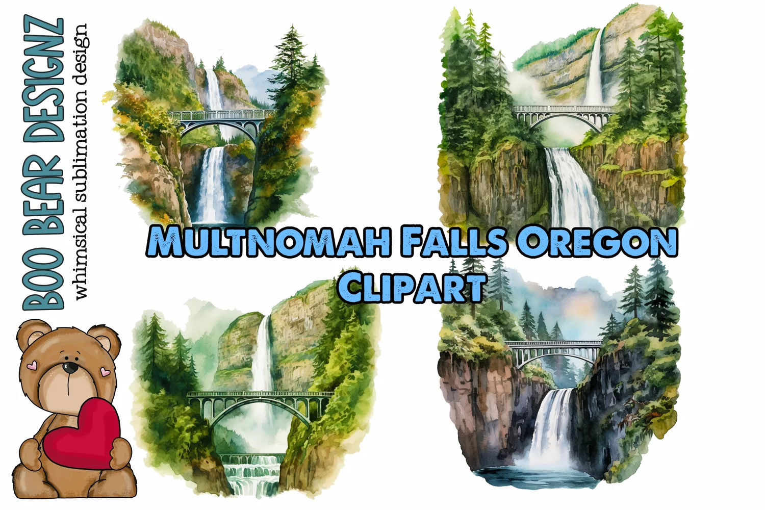 Watercolor Waterfalls Watercolor Illustration Oregon Sublimation Design