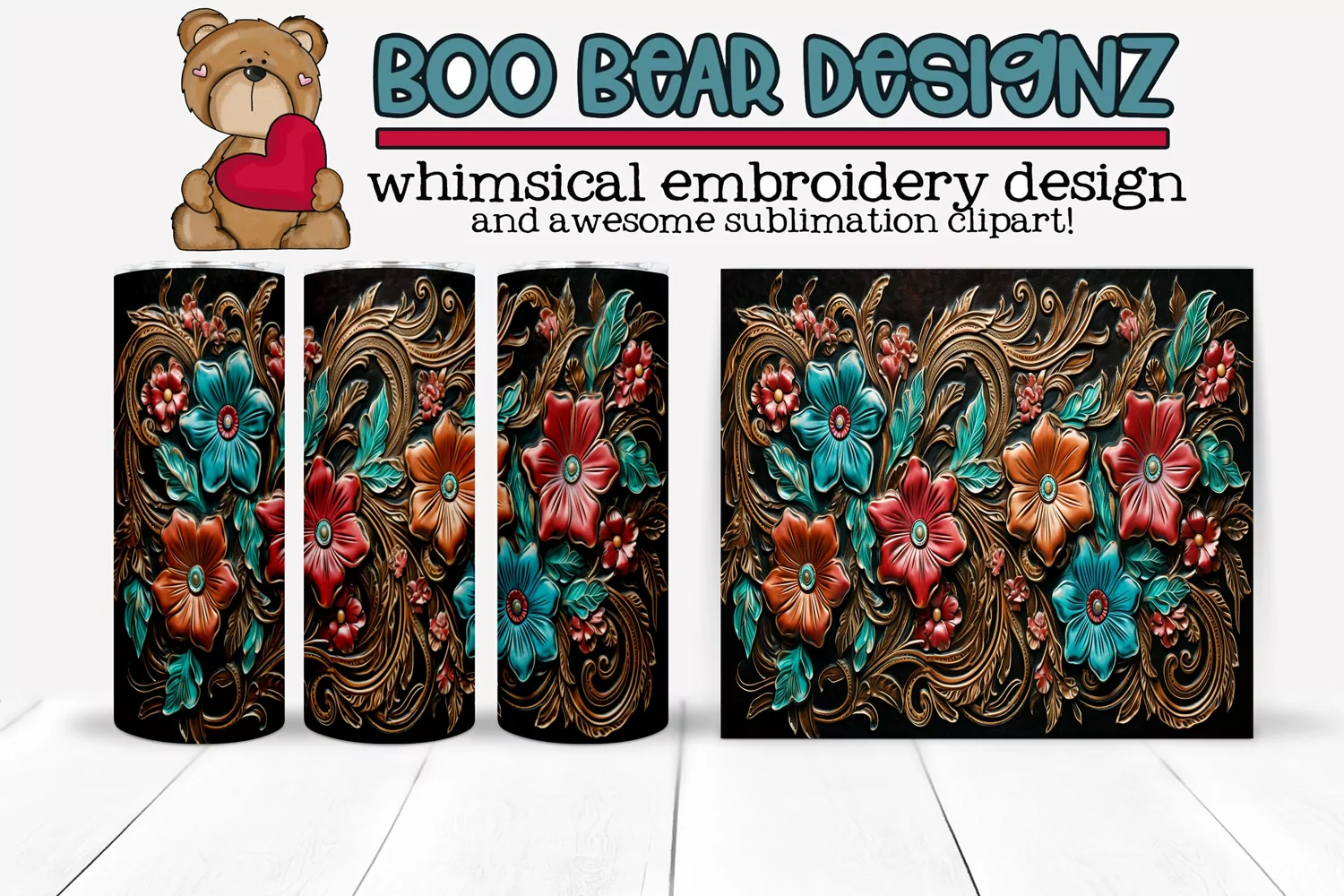 Flowers Png File Sublimation Design Tooled Leather Tumbler Wrap