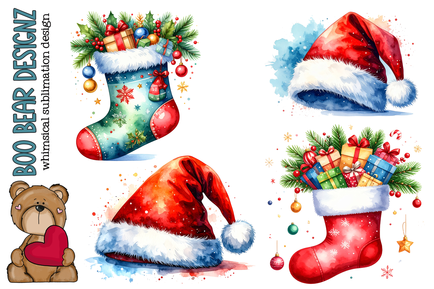 Santa Hat and Stocking clipart example image 1