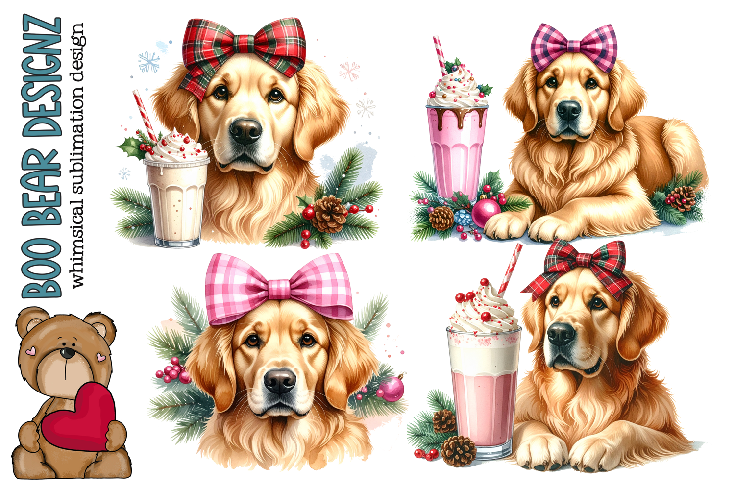 Pink Christmas T Shirt Dog Sublimation Hair Bow Dog Lover Christmas Time Christmas Tag Golden Retreiver