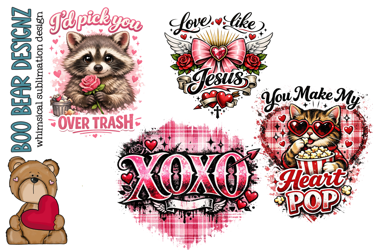 Love Hearts Valentines Day Tattoo Style Sarcastic Raccon