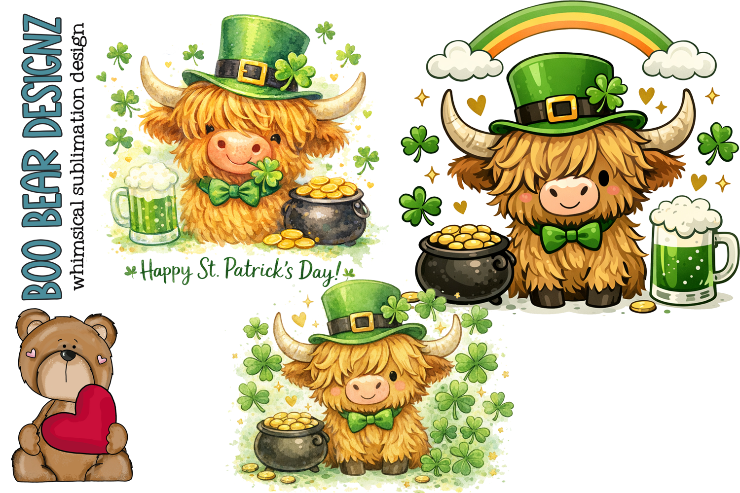 Happy St Patrick's Day! Highland Cow Clipart example image 1