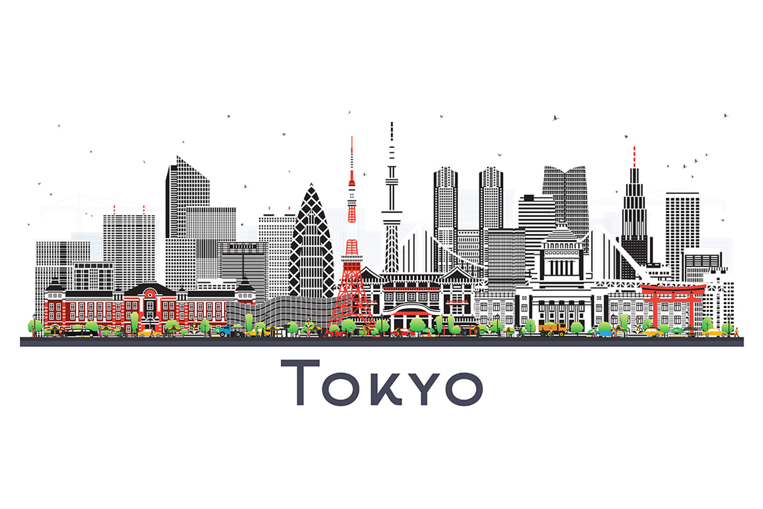 Tokyo Japan city skyline with color buildings isolated on wh example image 1
