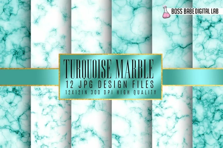 Turquoise marble digital paper example image 1