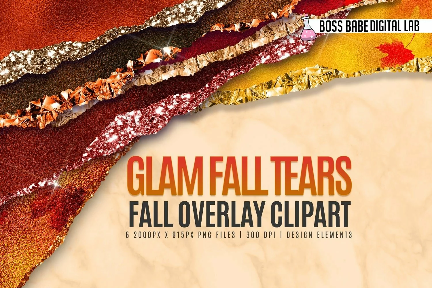 Need to glam up your social media posts, website, blog, or social media headers? Use these fun glam Fall tear borders clipart! Perfect for Canva and editors that can't add glitter or patterns to objects.