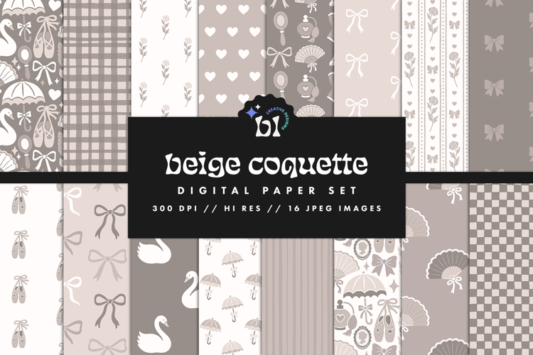 These Beige Coquette patterns are great for projects such as invitations, business cards, scrapbook elements, blog elements, merch, and more!
