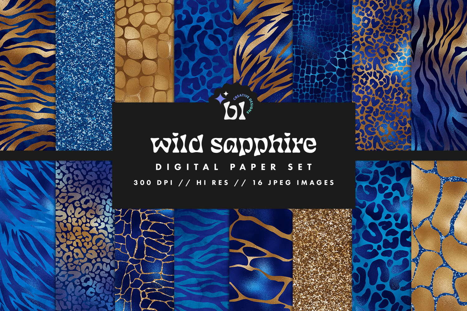 These navy and gold safari and animal print patterns are great for projects such as invitations, business cards, scrapbook elements, blog elements, merch, and more!