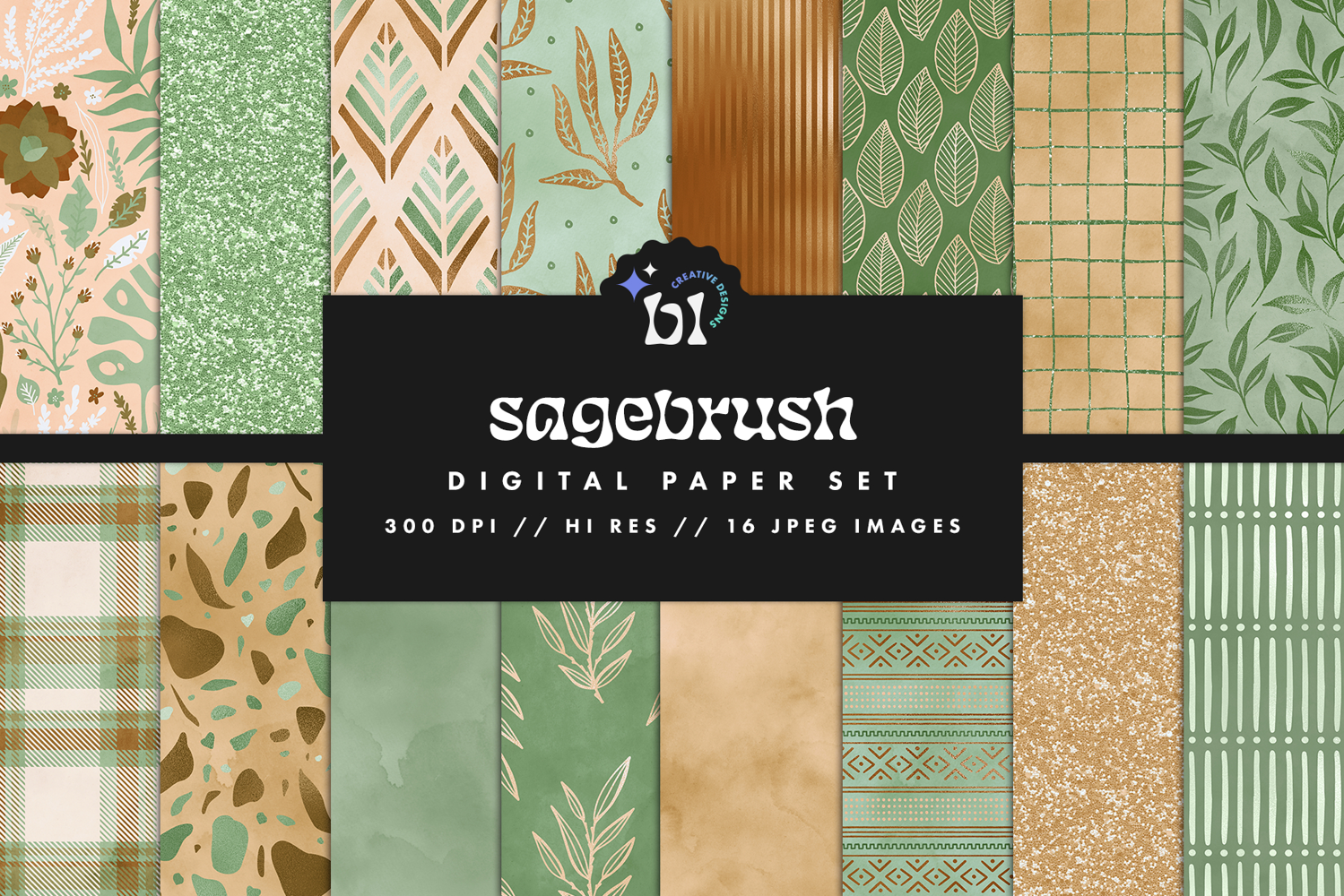 16 Sage & Tan Seamless Patterns