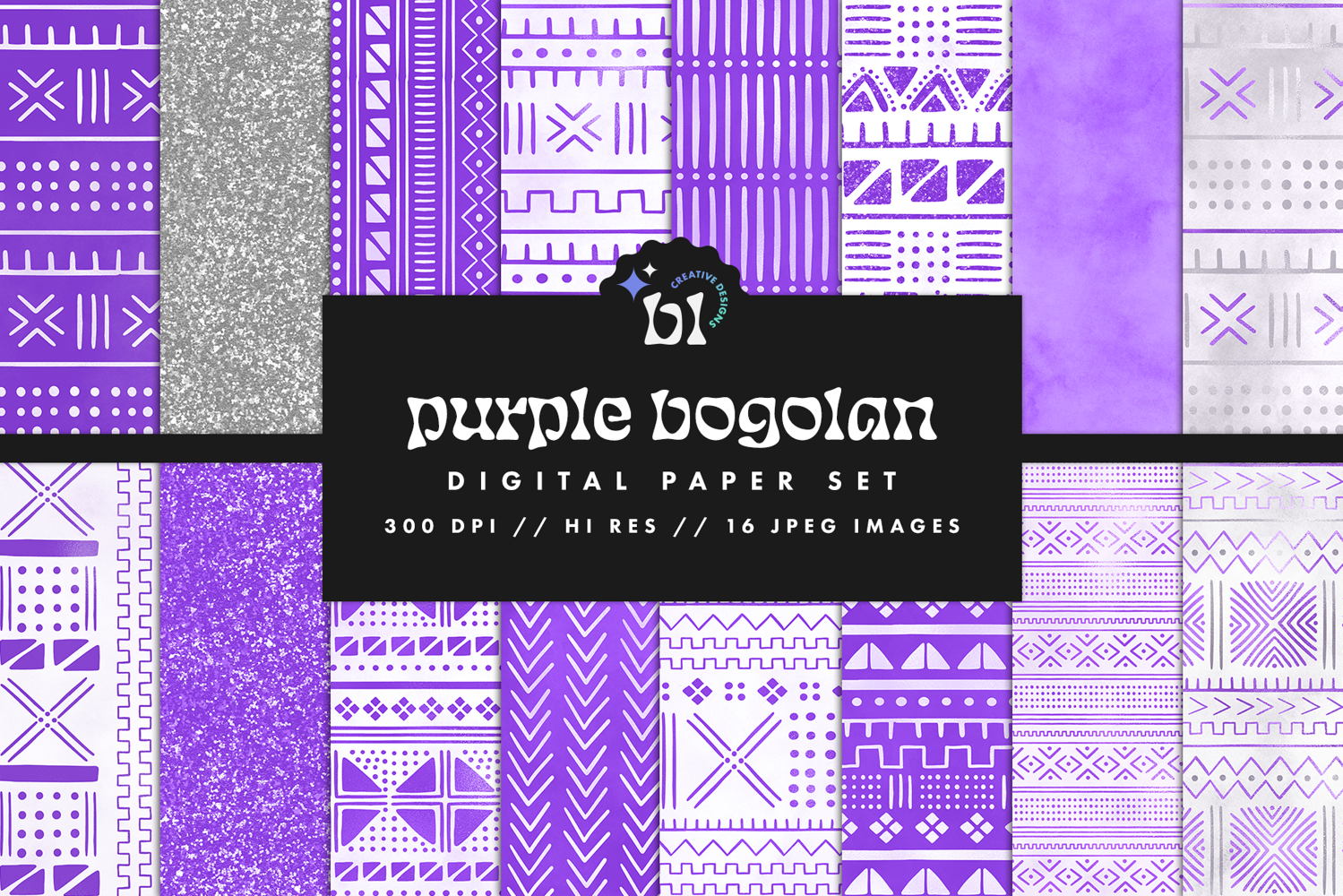 Tribal Digital Paper Scrapbook Paper Purple Patterns Boho Patterns Junk Journal Seamless Textures Mudcloth Bogolan Boho Hand Drawn