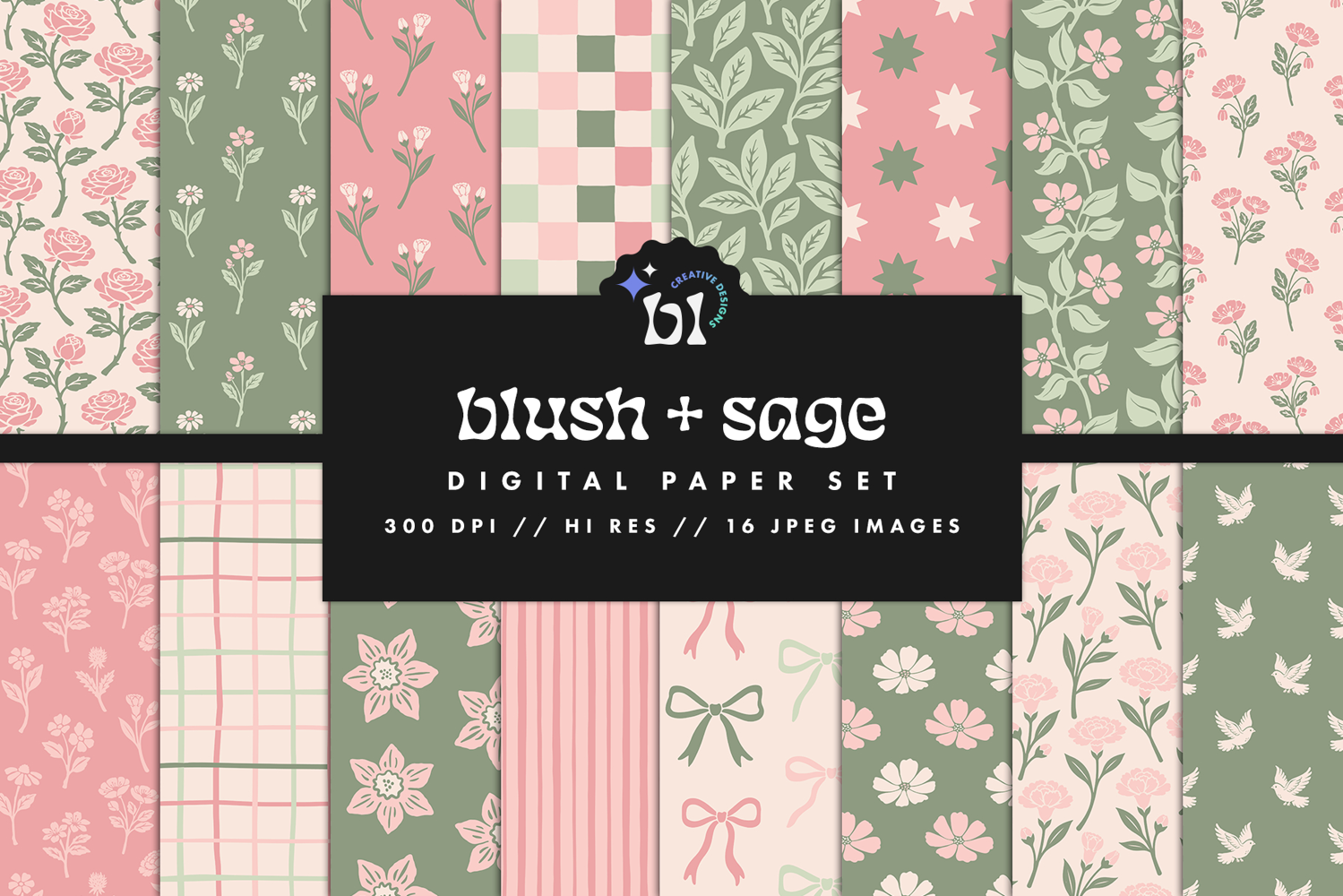 Blush & Sage Seamless Pattern Set