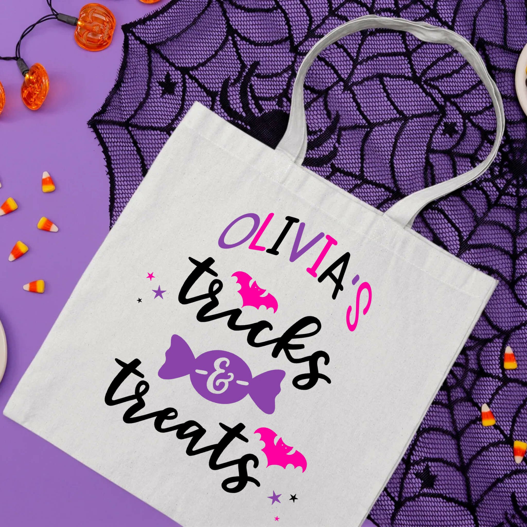 Trick or Treat! Get your Trick-Or-Treaters ready for their candy adventure with this cute and simple Trick or Treat bag SVG. Simply add your own font to complete a custom-made Trick or Treat bag. Font is NOT included.