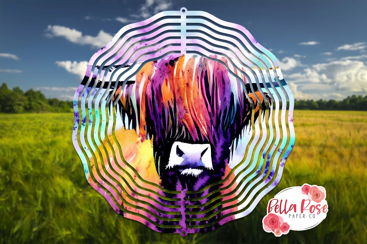 Western Sublimation Cow Sublimation Watercolor Sublimation Western Sublimation Highland Cow Sublimation Wind Spinner Sublimation Wind Spinner Cow Wind Spinner Sublimation Wind Chime