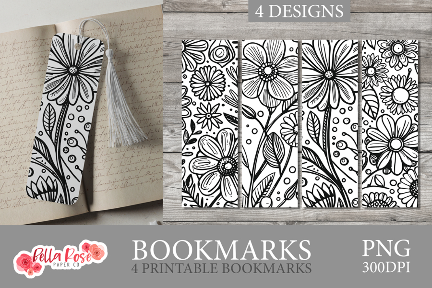 Doodle Floral Coloring Page Printable Bookmark Bookish Bookmark Printable Flowers Bookmark Coloring Printable Coloring Bookmarks Reading Printable