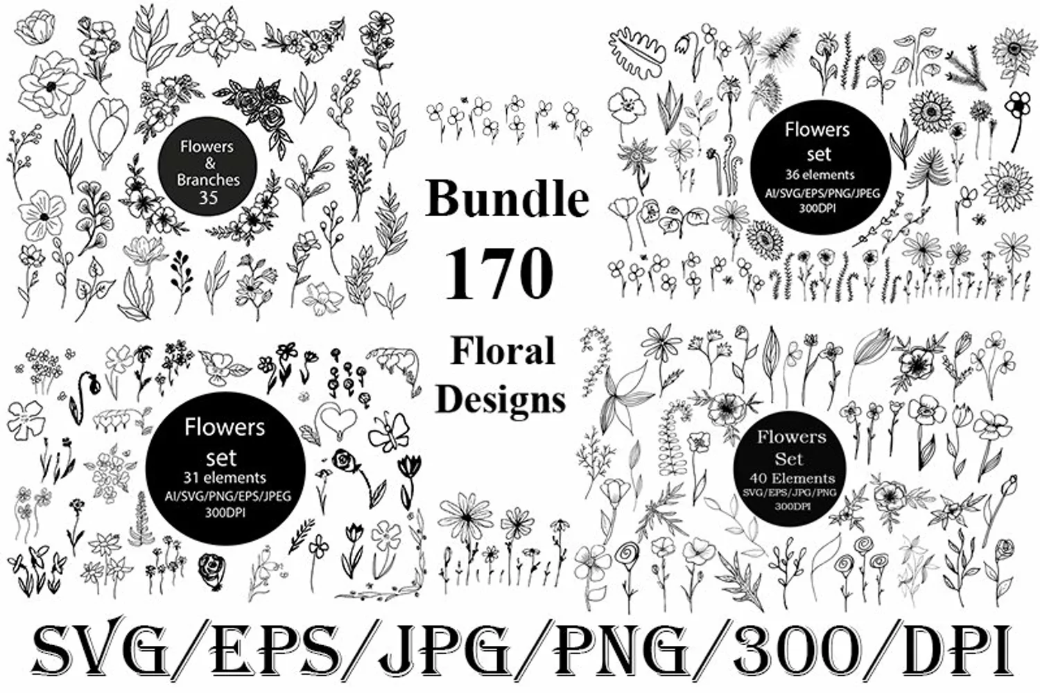 Bundle, flower, SVG, 170 elements leaves & flower