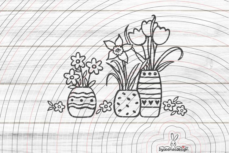 A cutting file with flowers in vases for decorations in spring, Easter, Mother's Day,
