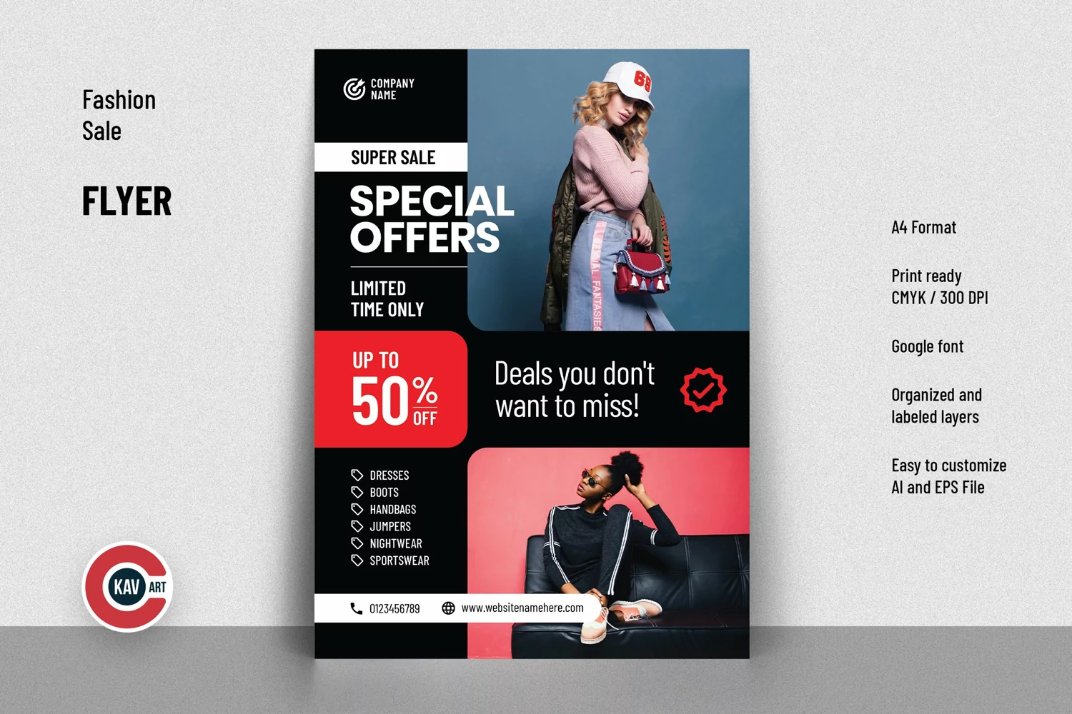 A creative professional flyer/poster template is perfect for promoting fashion offers and new arrivals with elegant print-ready designs. You can use this template for any other service as well, Whichever is suitable for your target audience. Fully editable and organized layers in flyer designs.