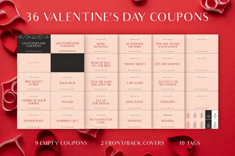 Valentine's Day Love Coupons For Her, Printable Coupons, Valentines Day, Valentines Coupons For Her, Valentines Day Gift, Coupons, Coupon Book, Love Coupon, Valentine Gift Voucher, Custom Printable Love Coupons Gift Present, Love Coupons, Custom Gift Certificate, Stripe, 10 Empty Editable Valentine's Coupons, 36 Valentine's Coupons for Woman, Wife, Girlfriend, Gift for Wife, Anniversary gift, PDF, Printable Love Coupon, Love Coupon Book for Her, Printable Love Coupons, Editable Love Coupons