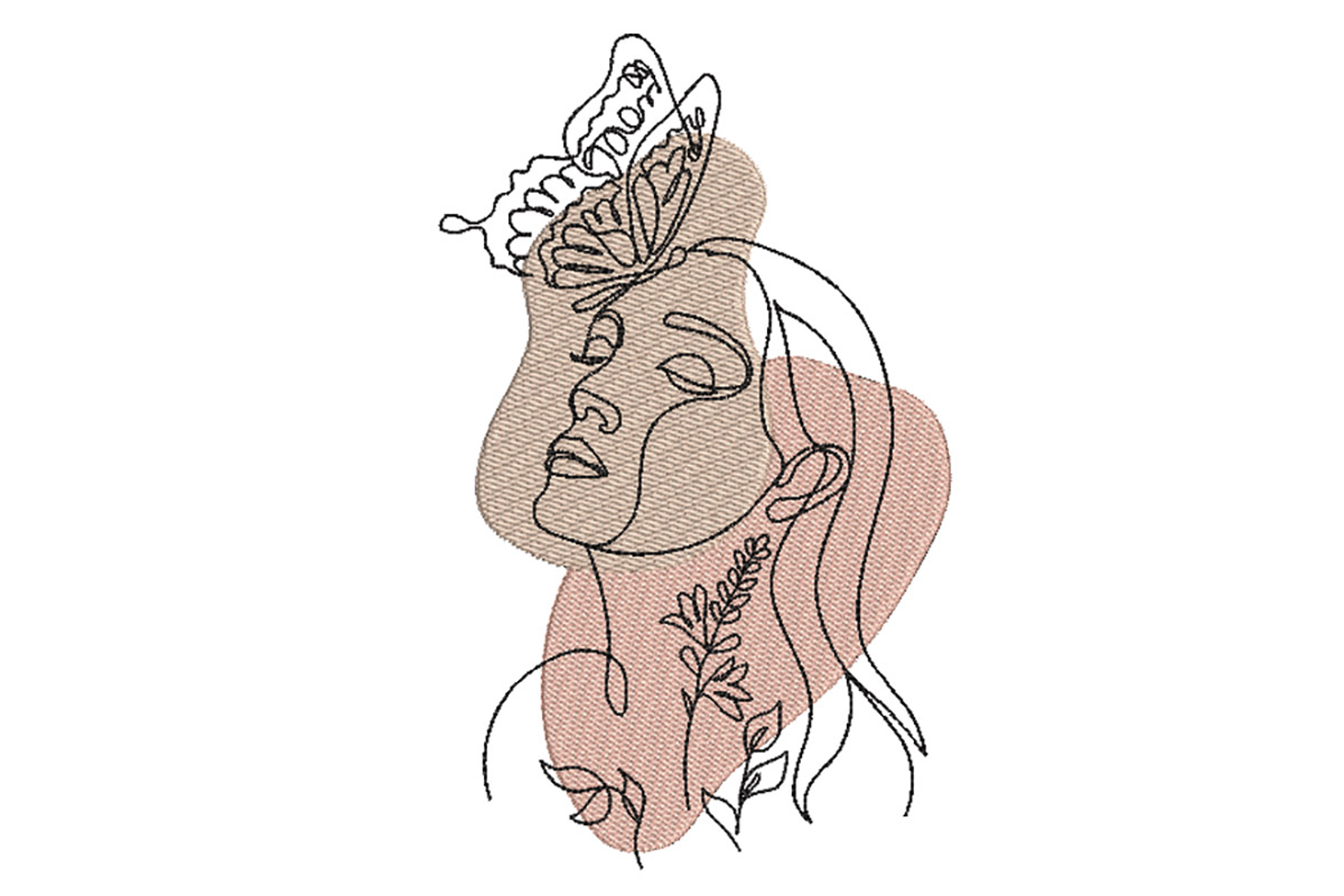 Woman face with butterfly. Machine Embroidery Design