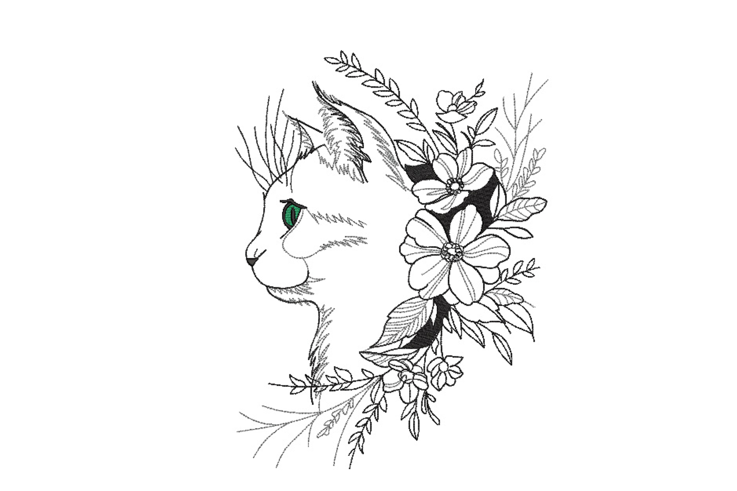 Floral Cat Machine Embroidery Design