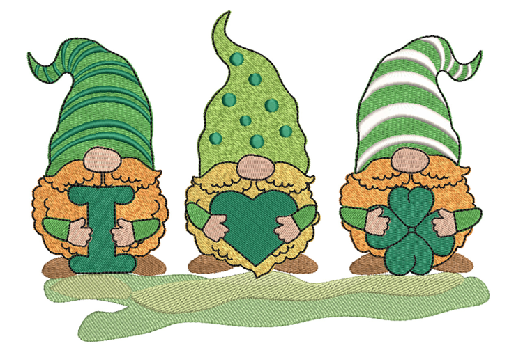 Three Irish gnomes. St. Patricks Day Gnome Embroidery Design