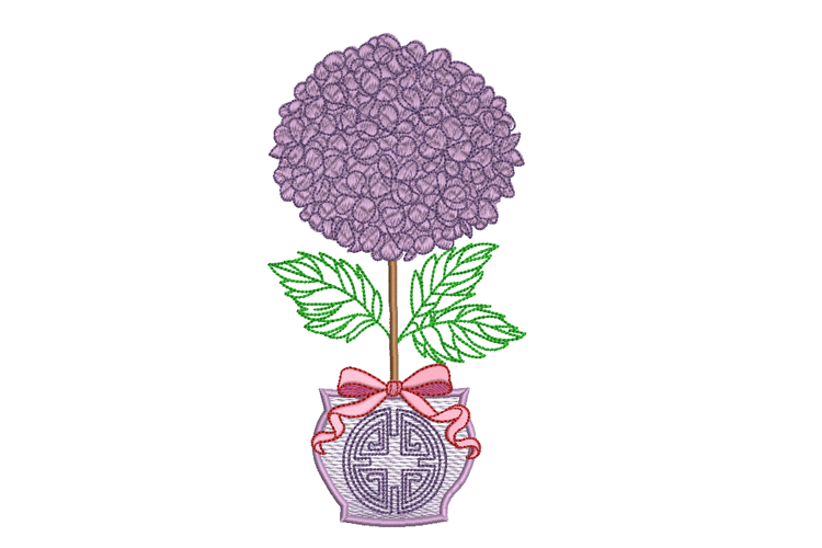 Hydrangea Machine Embroidery Design, Chinoiserie Hydrangea in a Pot