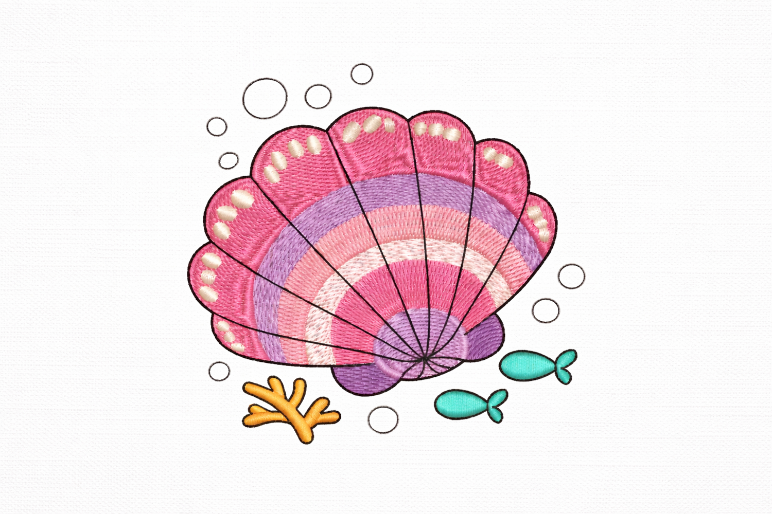 Add a soft ocean touch to your embroidery projects with this pink scallop seashell embroidery design.