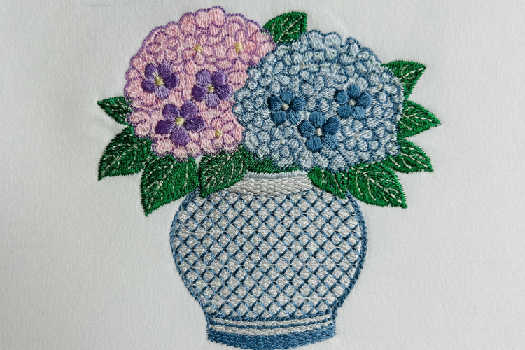 Hydrangea Vase Embroidery Design, Chinoiserie Floral