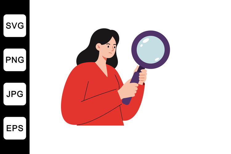 Illustration Character Flat Vector Art Colorful Woman Digital Glass Magnifying