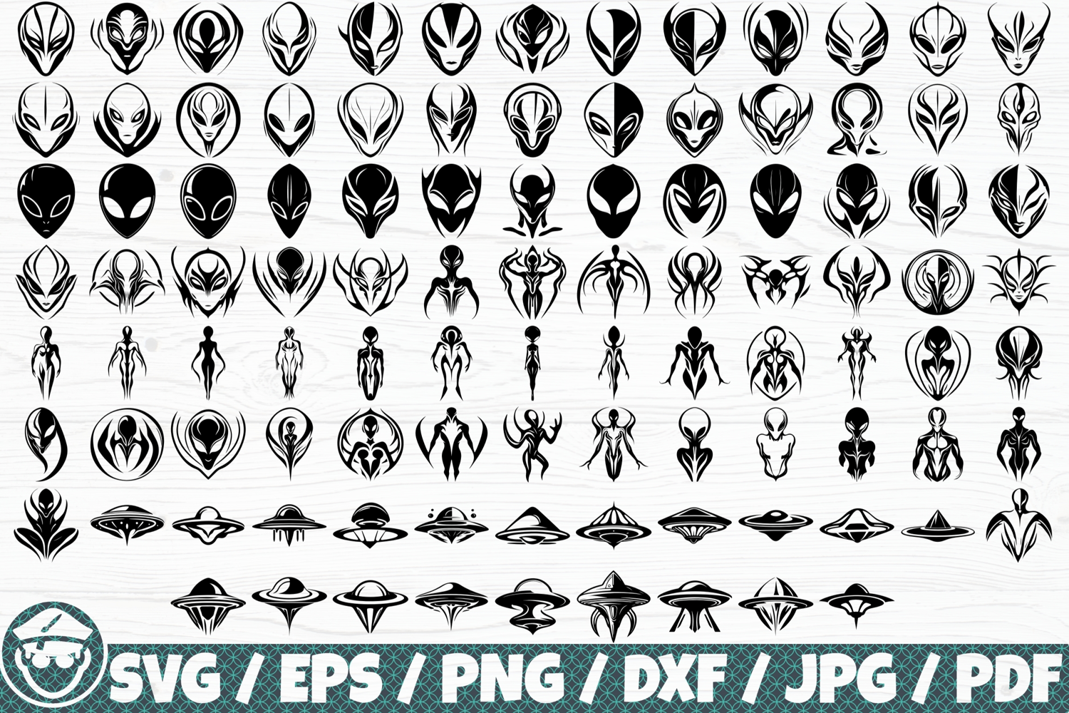 Alien / UFO Silhouette x100 BUNDLE example image 1