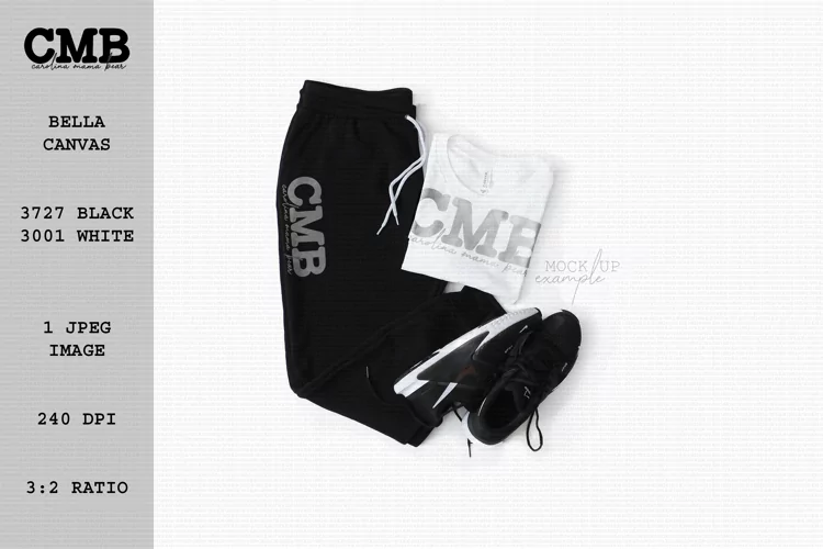 Bella Canvas 3727 Unisex Jogger Black 3001 White Unisex T