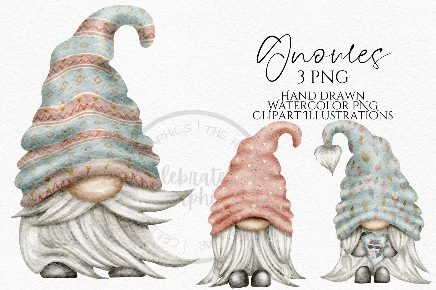 Hand-drawn watercolor gnomes in a watercolor. Brilliant for digital and print uses.