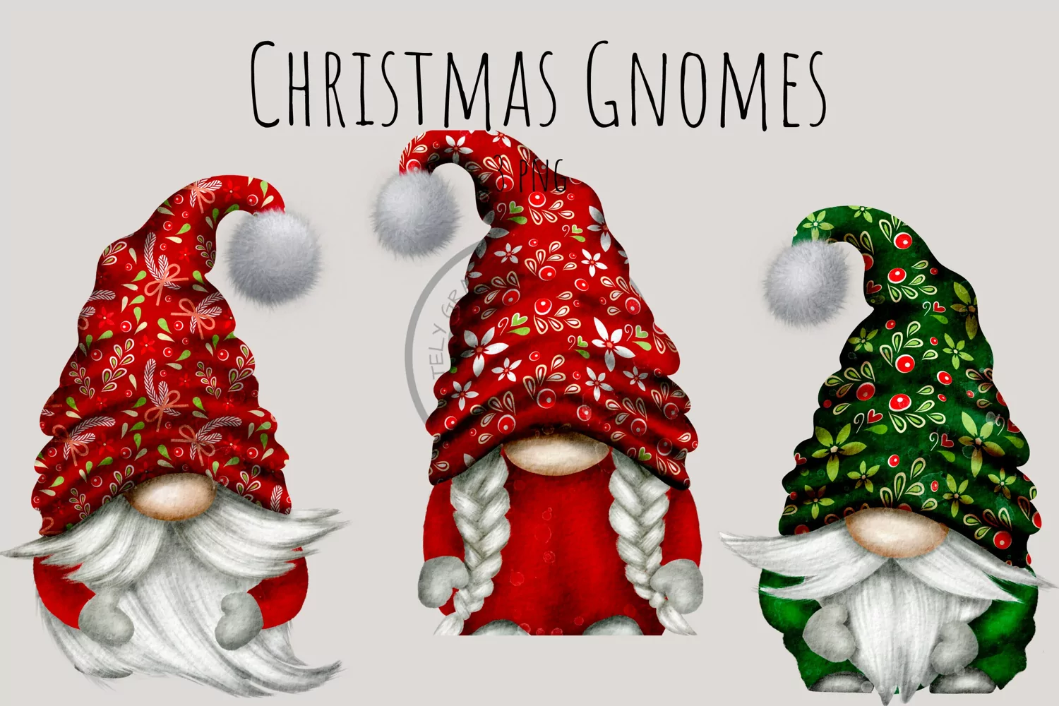Hand-drawn watercolor gnomes in a watercolor. Brilliant for digital and print uses.