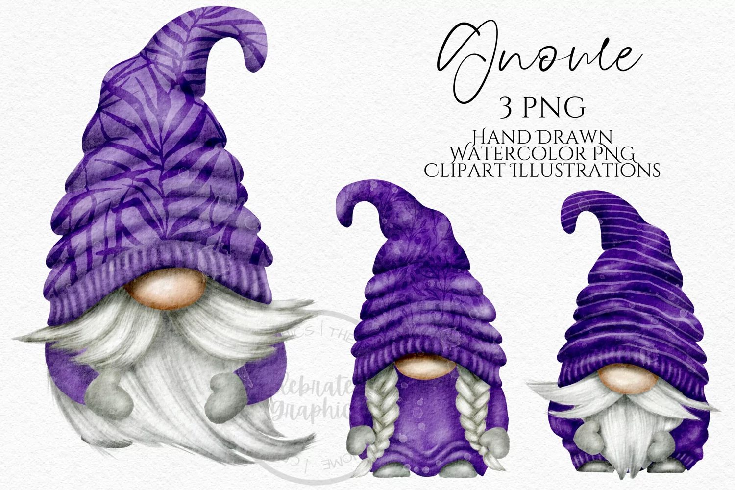 Purple Patterned Gnomes | Watercolor PNG Clipart example image 1