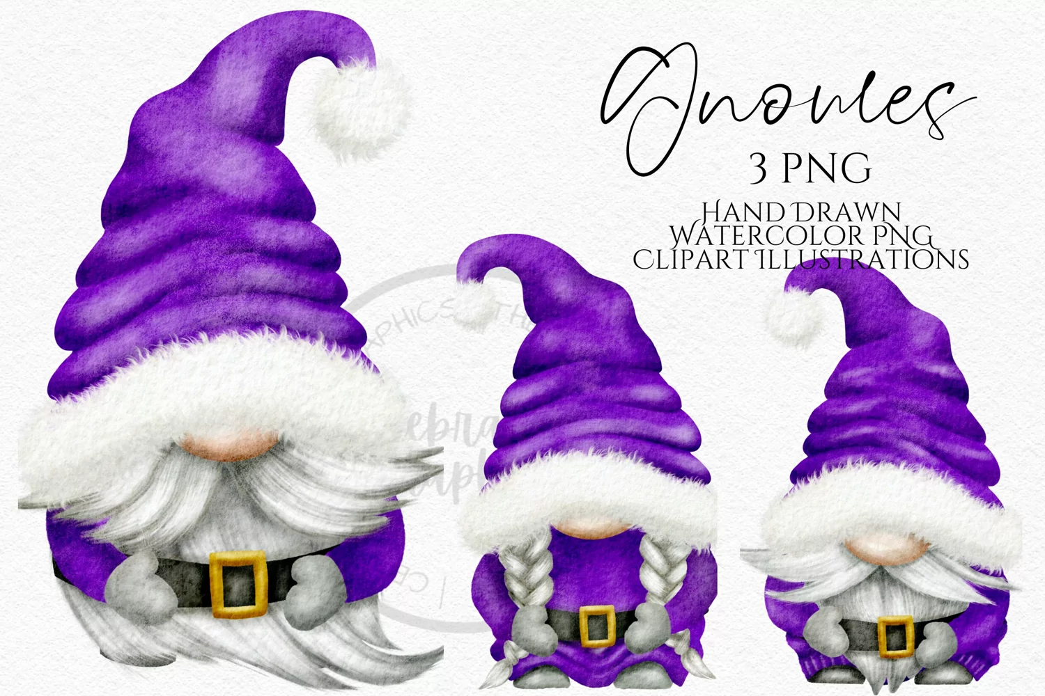 Purple Santa Christmas Gnomes | Watercolor Clipart Png