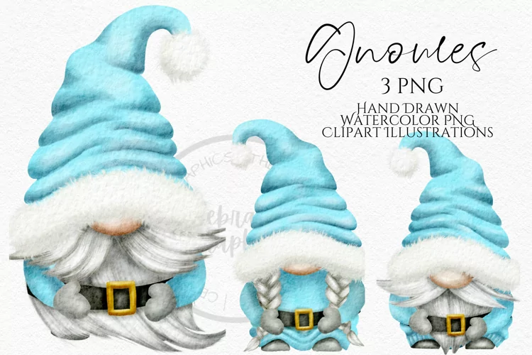 Hand-drawn watercolor gnomes in a watercolor. Brilliant for digital and print uses.