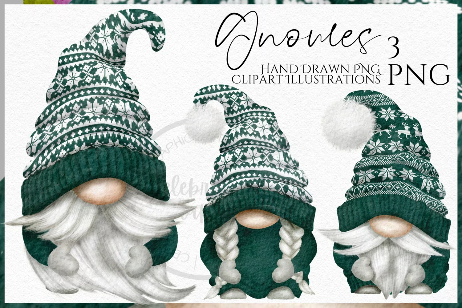 Similar Design Products to Green Knitted Hat Gnomes | Watercolor Clipart Png
