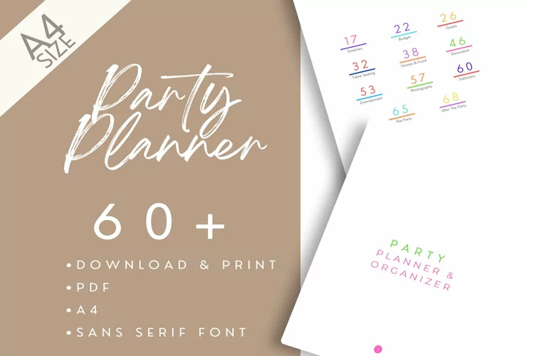 Colour Party Planner Sans Serif A4 example image 1
