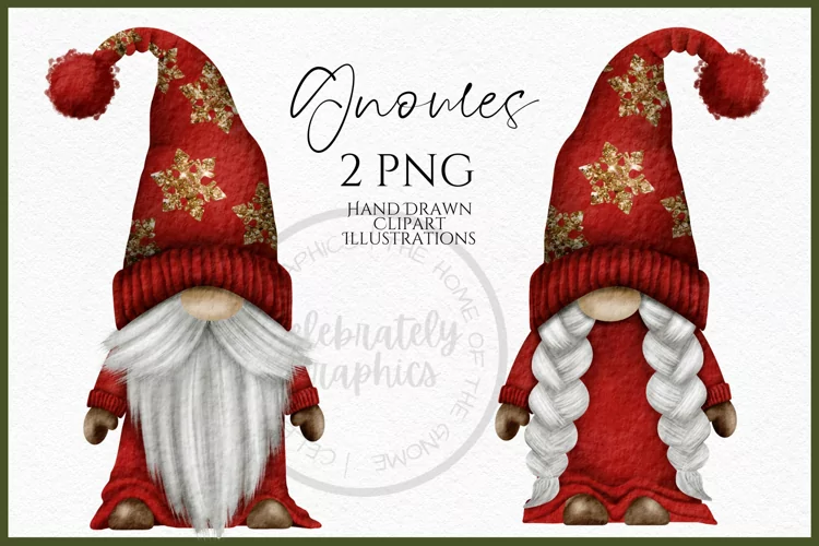 Watercolor Gnome Clipart Christmas Gnome Gnome Christmas Hand Drawn Gnomes Gnome Graphics Gnome Png Clipart Red Christmas Gnomes Red Gold Christmas Gnomes