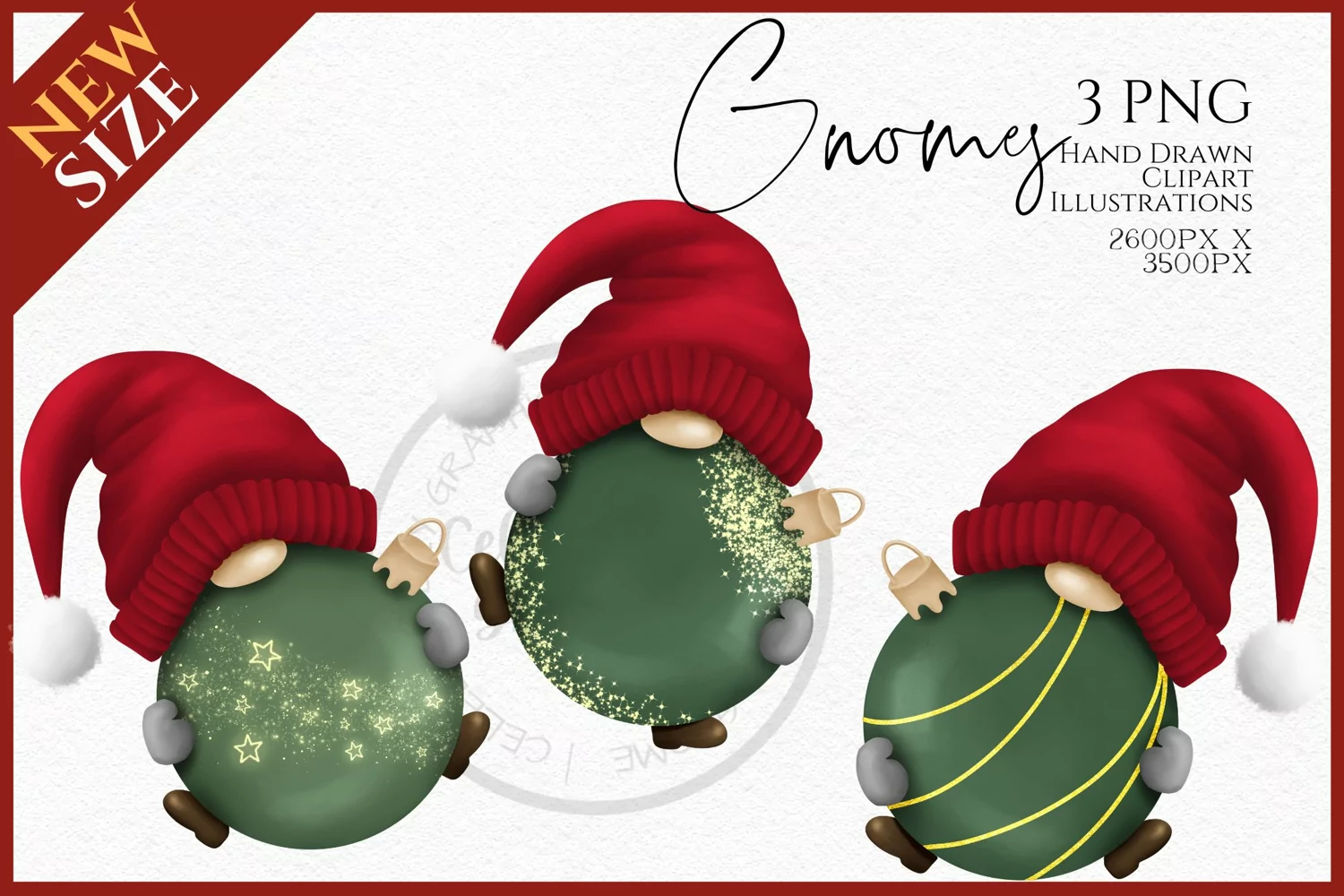 Christmas Bauble Gnomes Watercolour Clipart PNG