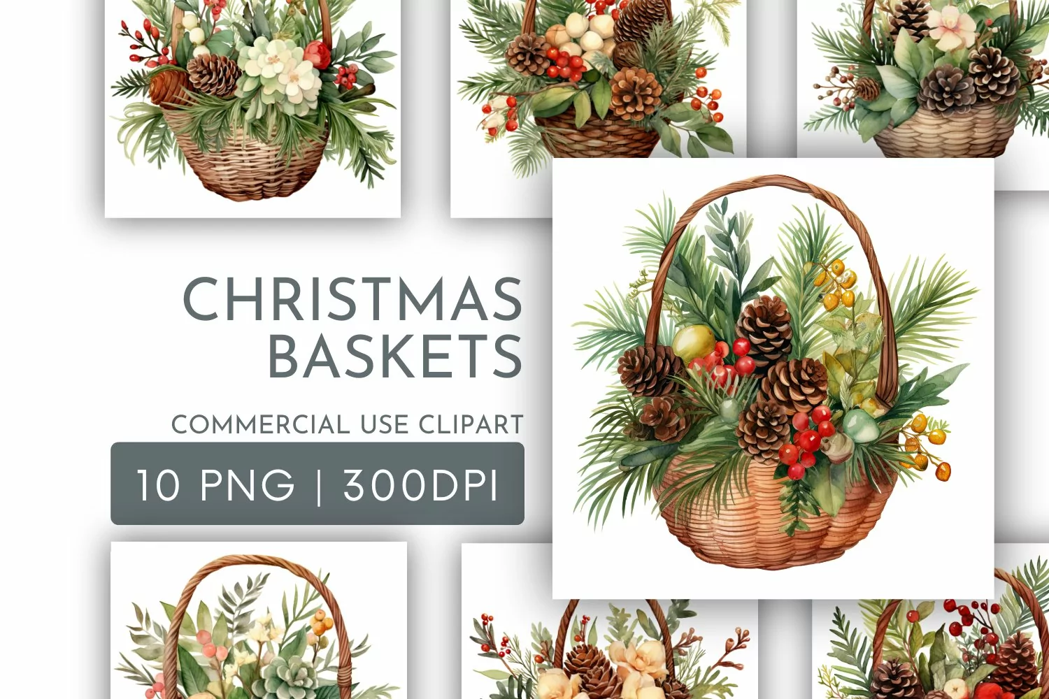 Christmas Basket Clipart | Watercolour Clipart PNG example image 1