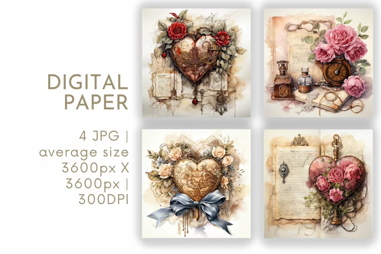 Scrapbooking Paper Valentine's Day Printable Papers Digital Download Valentines Paper Valentines Digital Paper Journal Printable Junk Journal Kit Junk Journal Pages Junk Journal Digital