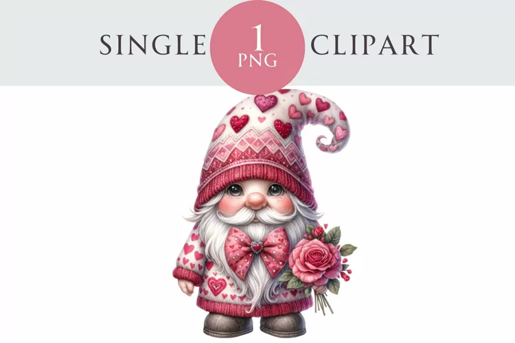 Valentines Gnome Clipart Single PNG example image 1