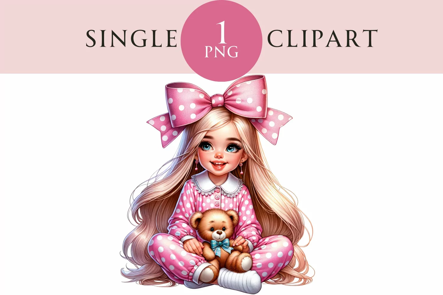 Young Girl In Pyjamas Clipart Watercolor PNG example image 1