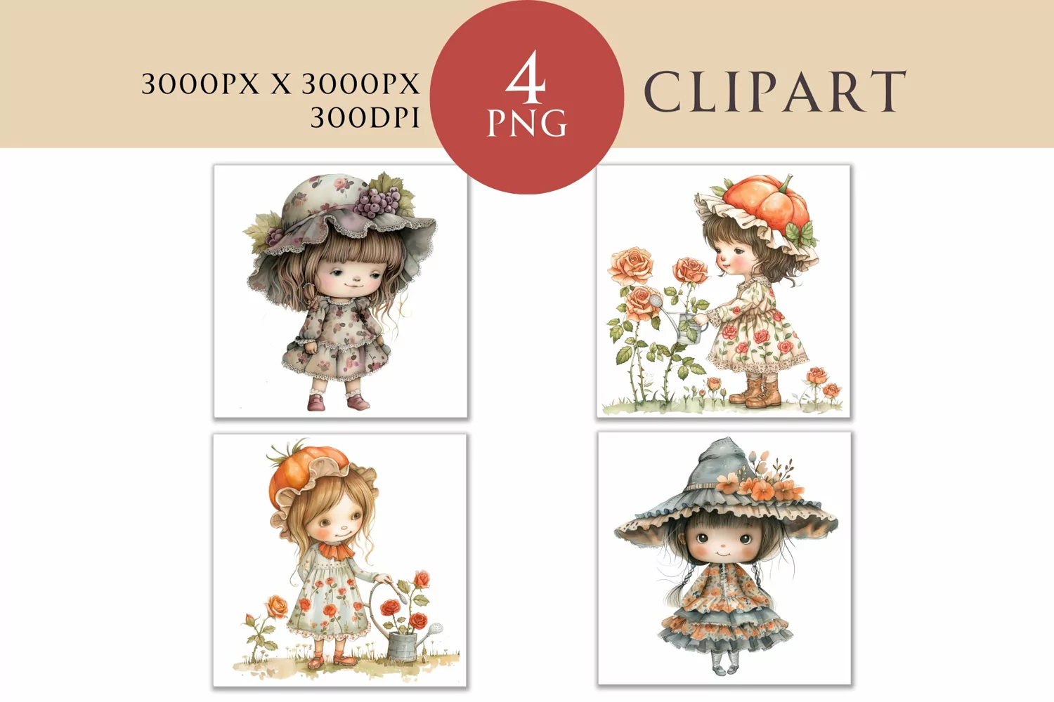Similar Design Products to Whimsical Girls Clipart Watercolor PNG