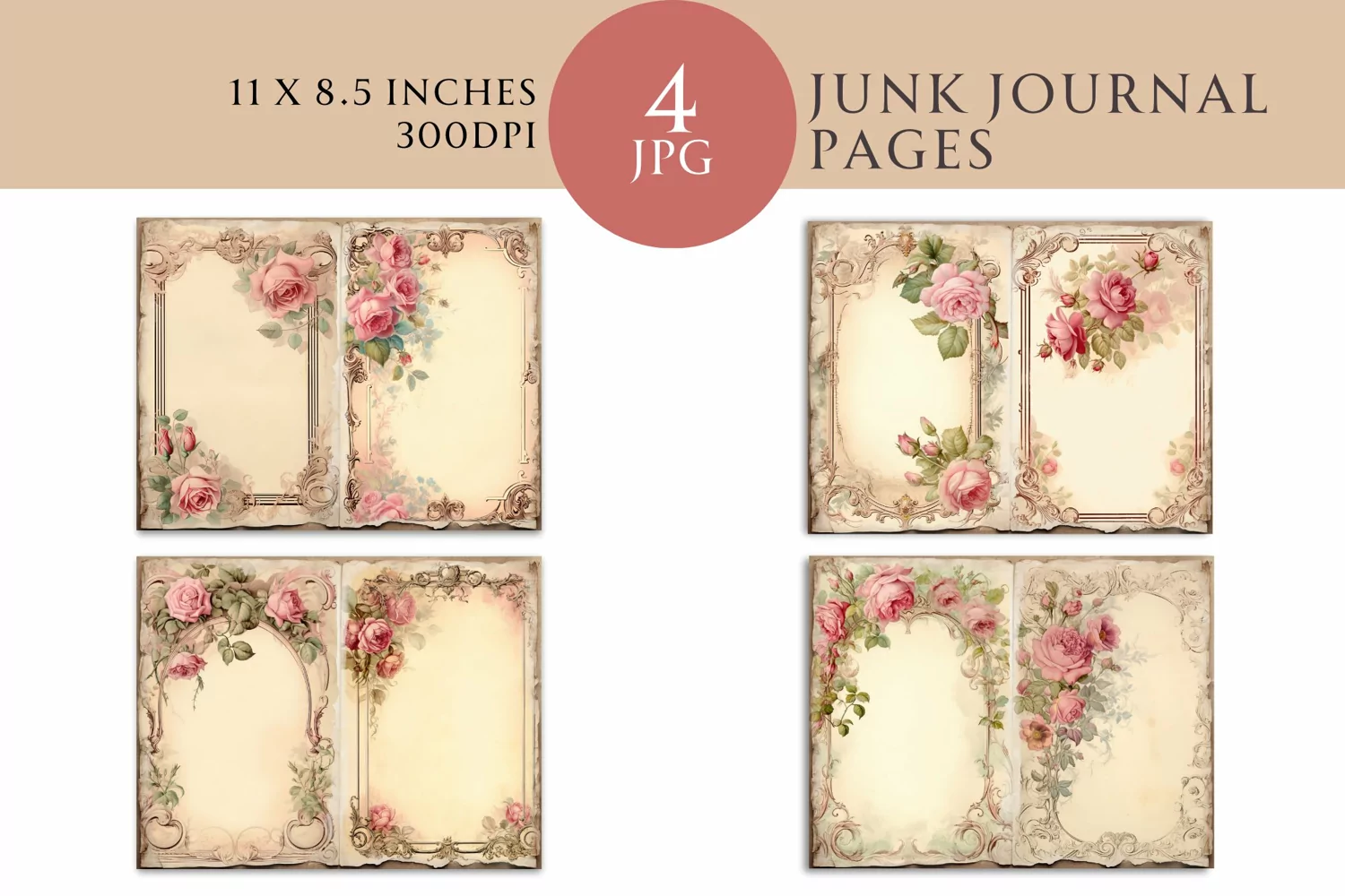 Pink Roses Junk Journal Bi-fold Pages