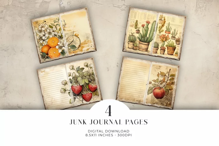Shabby Chic Journal Ephemera Junk Journal Kit Vintage Junk Journal Flower Junk Journal Floral Junk Journal Nature Junk Journal Blank Junk Journal French Junk Journal Fruit Junk Journal Digital Paper Bi-fold
