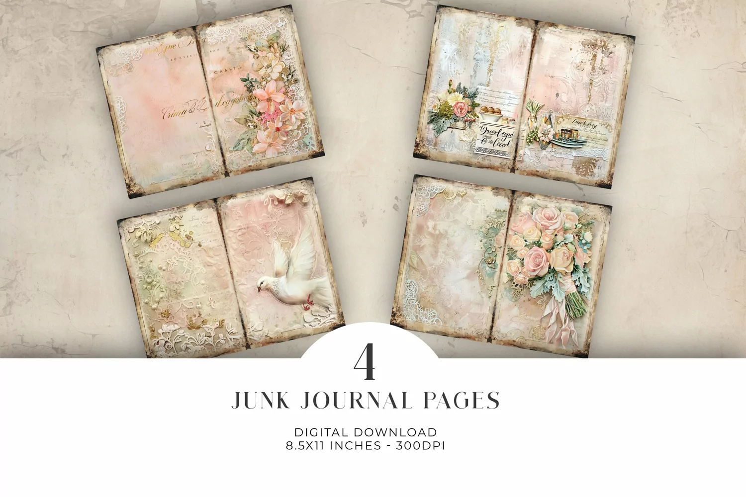 Shabby Chic Scrapbook Paper Digital Download Printable Journal Vintage Ephemera Junk Journal Kit Junk Journal Pages Junk Journal Paper Printable Page Wedding Junk Journal Digital Paper Bi-fold
