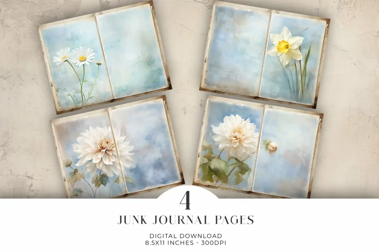 Shabby Chic Scrapbook Paper Watercolor Digital Paper Printable Journal Junk Journal Pages Junk Journal Paper Printable Page Watercolour Junk Journal Paper Watercolor Junk Journal Digital Paper Bi-fold 4