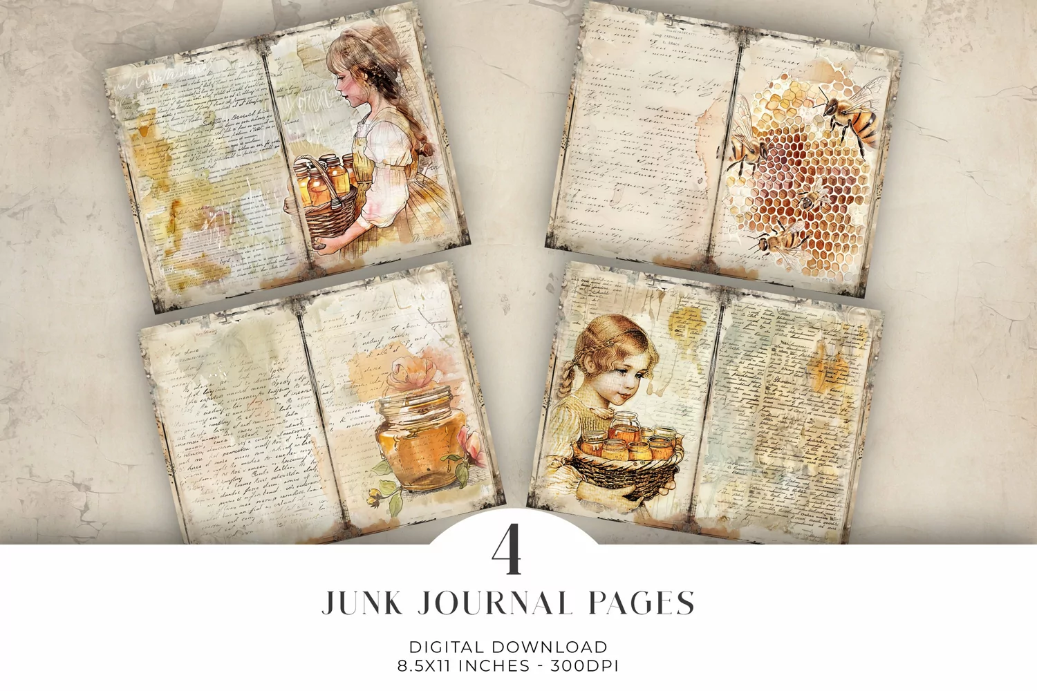 Watercolor Honey Junk Journal Digital Paper Bi-fold