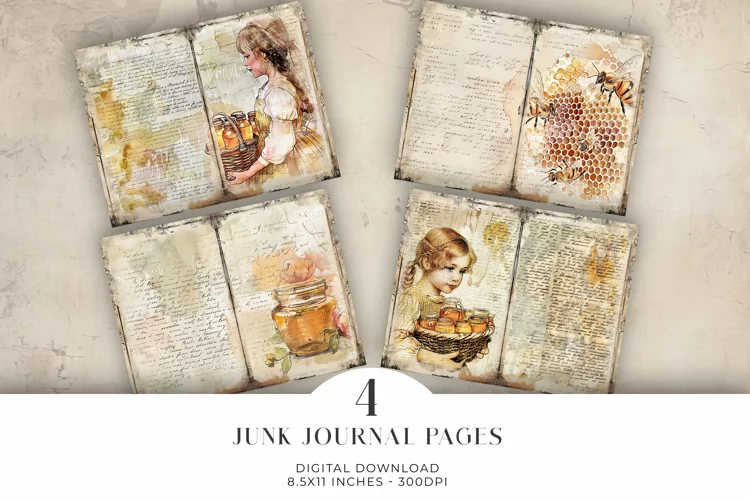 Similar Design Products to Watercolor Honey Junk Journal Digital Paper Bi-fold